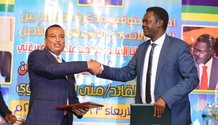 ووقع الطرفان على مذكرة تفاهم اليوم تحتوي على اكثر من ١٦ بند حيث وقع من جانب الحركة رئيسها اركو مناوي ومن جانب الاصل جعفر الميرغني.