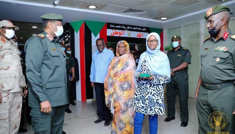 كرّم رئيس مجلس السيادة الانتقالي الفريق اول ركن عبدالفتاح البرهان بمكتبه بالقيادة العامة اليوم، الطالبة لدن عبدالرازق بابكر،إبنة المساعد بالقوات المسلحة، والمفقود في منطقة الفشقة خلال الأحداث التي كانت قد شهدتها المنطقة.