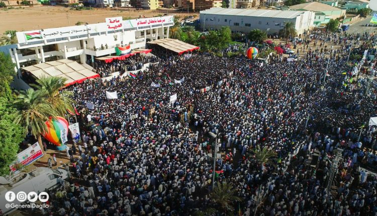 احتشدت أمس الأحد أعداد مليونية من المواطنين بساحة الحرية رغم الاحترازات الصحية لجائحة الكورونا، للاحتفال بتوقيع السلام واستقبال قيادات أطراف عملية السلام التي تعتبر إضافة حقيقية للسلام واستقرار البلاد إيذاناً بالبدء الفعلي لتنفيذ اتفاق السلام على أرض الواقع.