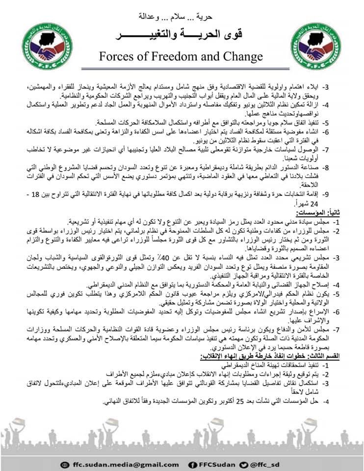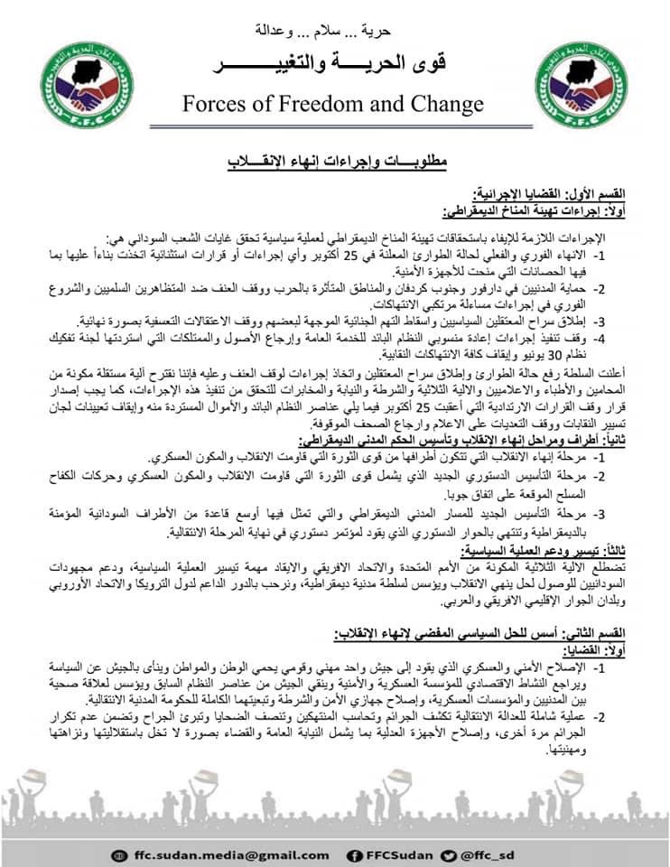 رؤية الحرية والتغيير لمطلوبات وإجراءات السلطة الجديدة