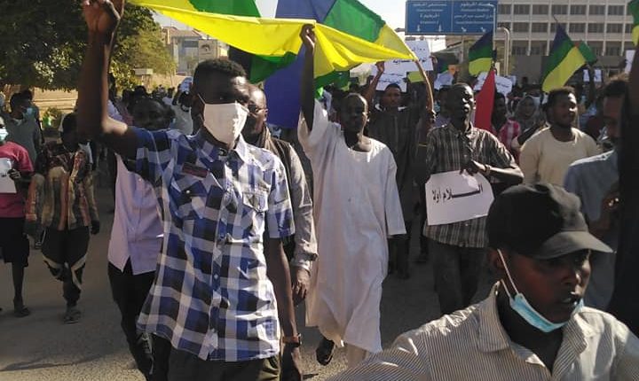 ويقف  المتظاهرون في شارع الجامعة بالخرطوم على بعد أمتار من القصر الجمهوري وتفصل بين البوابة الرئيسية للقصر قوات من الجيش حيث يهتف الثوار بالعدالة والقصاص للشهداء.