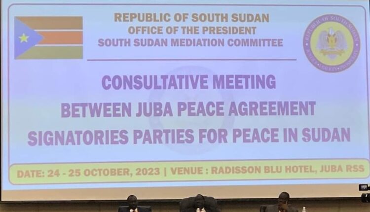 ختم الاجتماع التشاوري لأطراف السلام أعماله، في جوبا يوم الأربعاء، بعد انعقاد استمر ليومين ، وقال مصطفى تمبور رئيس حركة تحرير السودان إن الاجتماع توصل لتنظيم حوار سوداني سوداني لا يستثني أحد مشيراً إلى عدم حسم مشاركة المؤتمر الوطني ، وأكد عدم مشاركة قوات الدعم السريع في الحوار السياسي المزمع عقده في جوبا لأنه يعني القوى السياسية ، وإن الاجتماع التشاوري انعقد بدعوة من وساطة جنوب السودان.