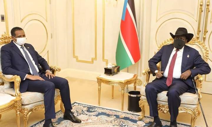 استقبل رئيس جمهورية جنوب السودان، الفريق أول سلفا كير ميارديت، اليوم بمكتبه بالعاصمة جوبا، الفريق أول محمد حمدان “حميدتي”، نائب رئيس مجلس السيادة، والوفد المرافق.