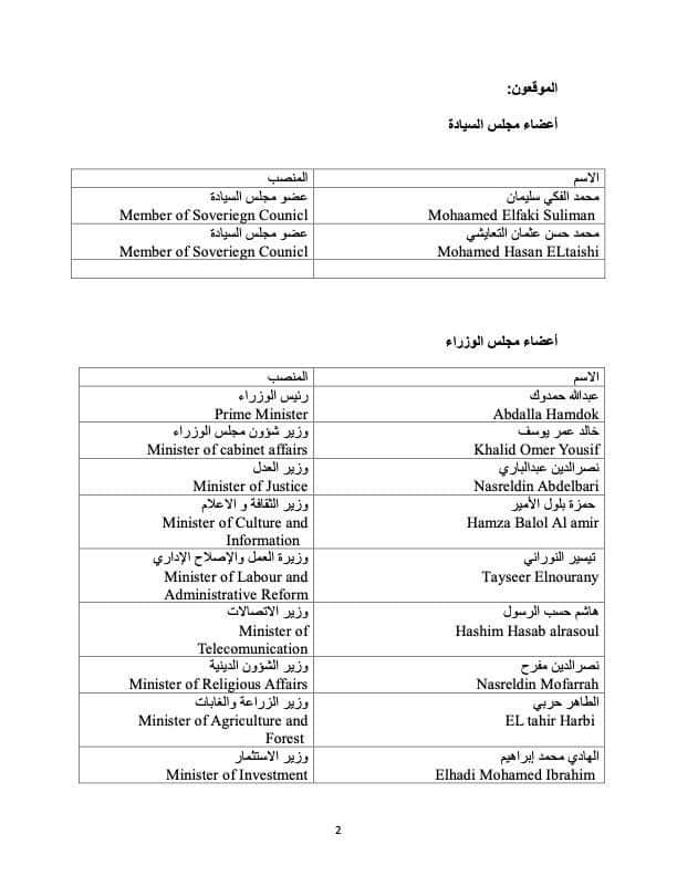 الوثيقة الدستورية للعام نحن الموقعين ادناء، أعضاء الحكومة السودانية، التي تشكلت 2019، نخاطبكم لتوضيح الآتي:
