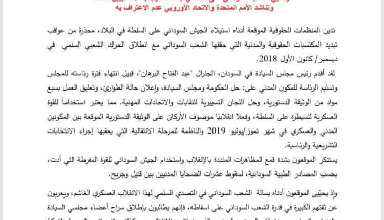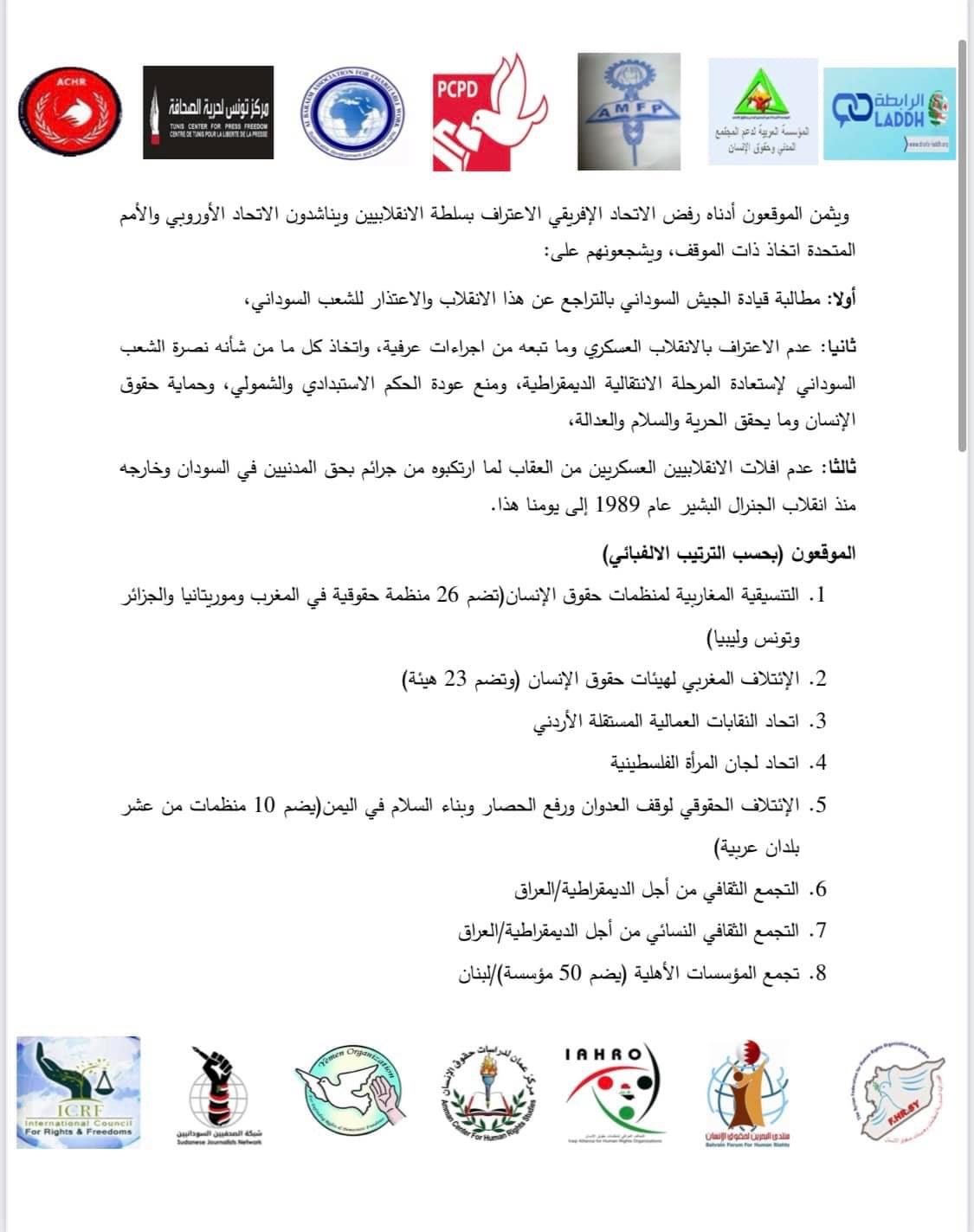 ( ٩٩) إئتلاف وشبكة ومنظمة حقوق إنسان تدين الانقلاب العسكري في السودان